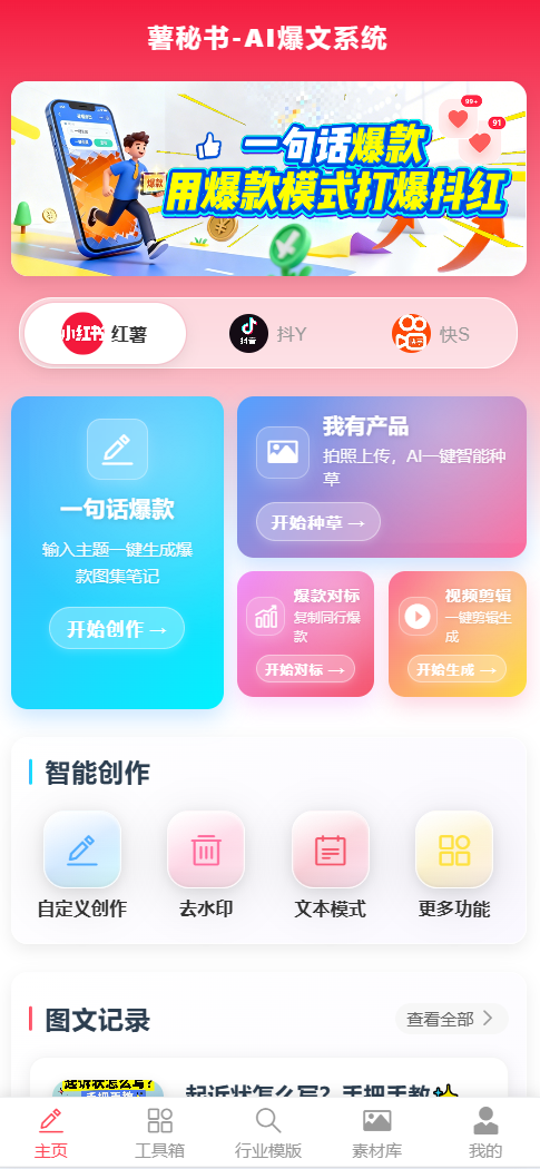 仅需输入行业/主题关键词,AI自动围绕主题创作高质量图文笔记